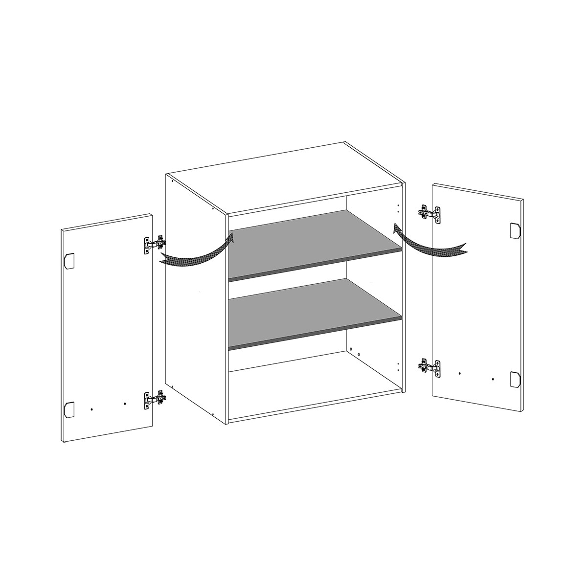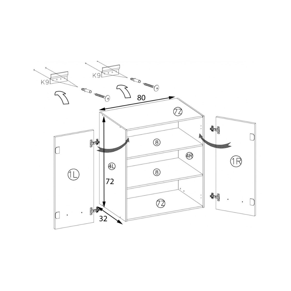 Dulap suspendat îngust cu 2 usi, 80 cm, cu 2 rafturi în interior.