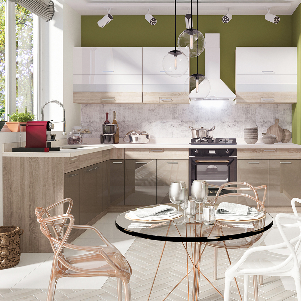 Puteți asambla PREMIO din module individuale exact în funcție de configurația bucătăriei dumneavoastră. Indiferent dacă aveți un apartament mic sau o casă spațioasă, cu această bucătărie puteți crea cu ușurință spațiul ideal de lucru și depozitare.