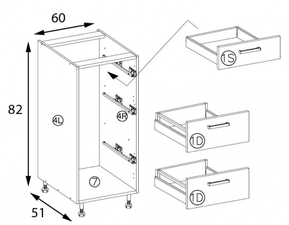 -Dulap prevazut cu picioare reglabile (13.5-16 cm)