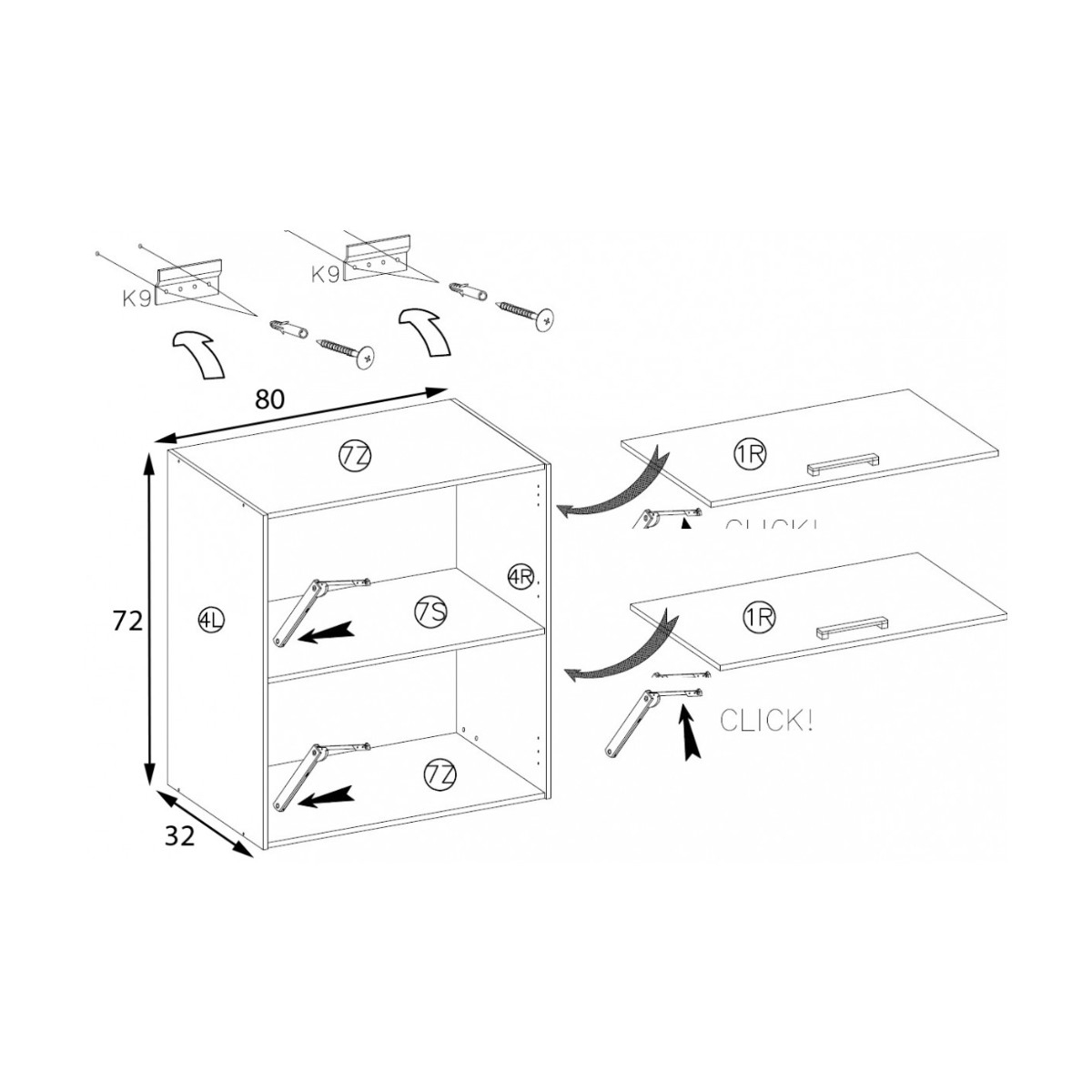 Dulap de perete cu lățime de 60 cm cu 2 uși care se deschid în sus.