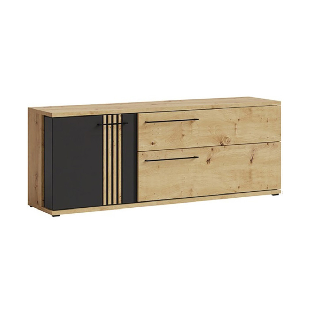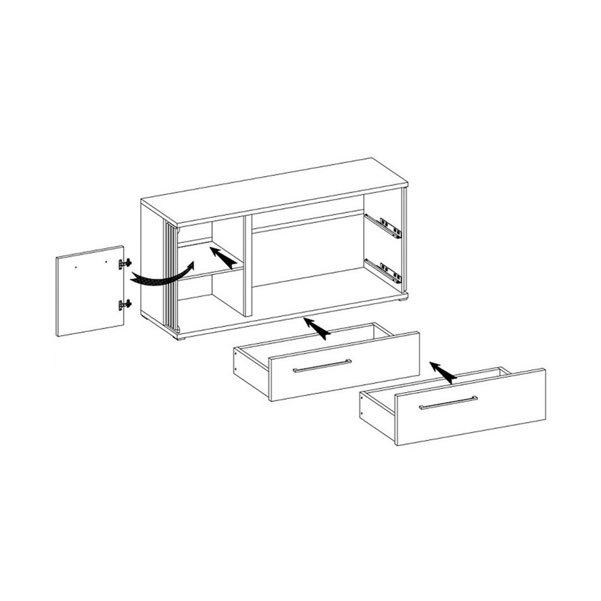 Suportul TV MOLTO ML4 are 2 sertare și un raft în mijloc în spatele ușii.
