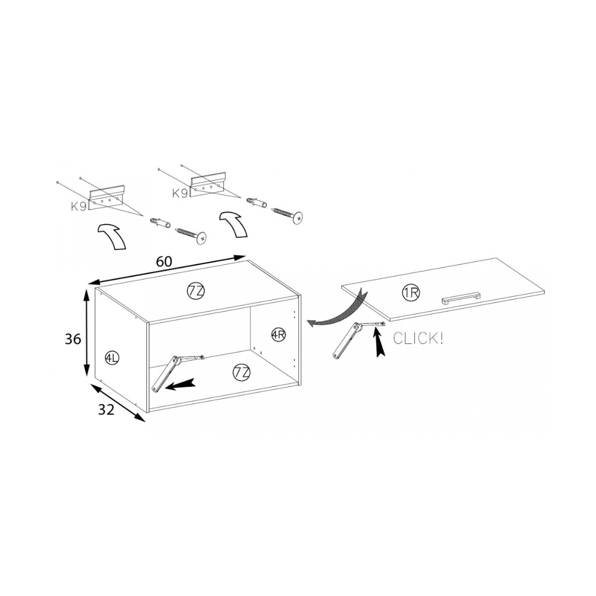 Dulap de perete cu lățime de 60 cm cu o usa care se deschide în sus.